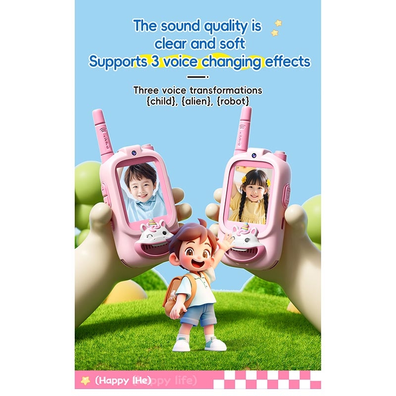 L'ensemble talkie-walkie vidéo JK200 allie technologie, sécurité et plaisir. Avec la communication vidéo en temps réel, les effets de changement de voix et un design robuste adapté aux enfants, il est indispensable pour des aventures créatives et connectées.