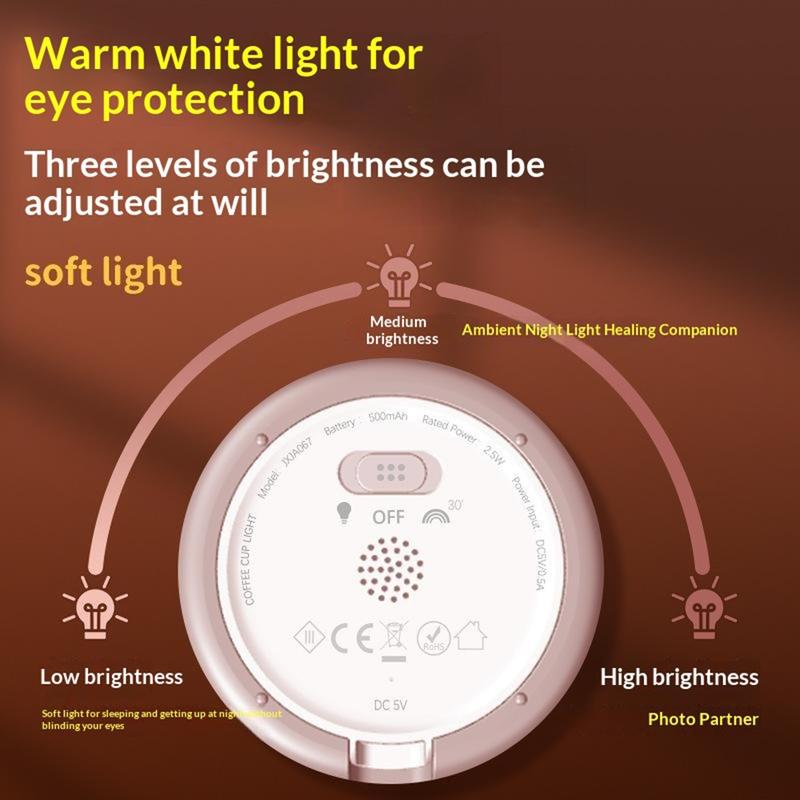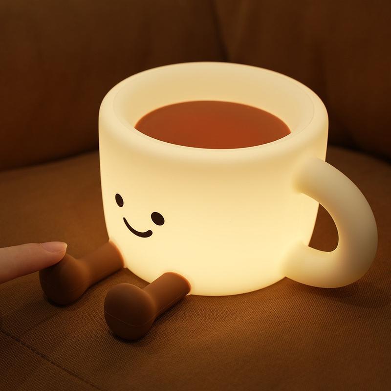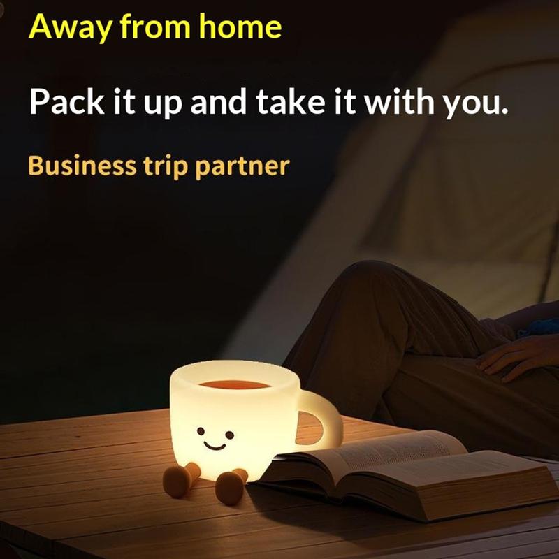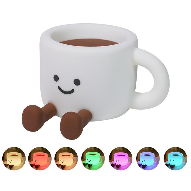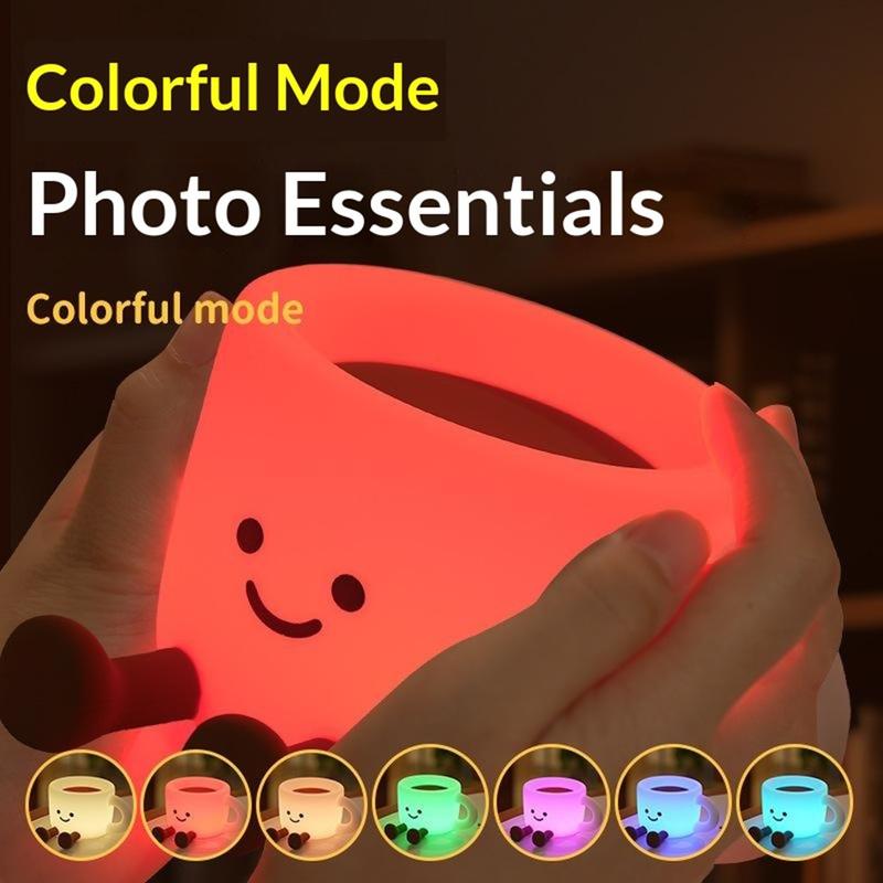 Ajoutez une touche chaleureuse à n'importe quelle pièce avec cette adorable veilleuse en forme de tasse à café, une lampe de chevet amusante qui sert également de support pour téléphone et de lampe d'ambiance portable. Avec 7 couleurs LED changeantes et 3 niveaux de luminosité, elle est parfaite pour passer des soirées relaxantes, créer une douce lumière nocturne ou mettre en valeur vos photos et vidéos. Son contrôle tactile simple la rend facile à utiliser, tandis que la minuterie d'arrêt automatique de 30 minutes permet d'économiser de l'énergie et évite que la lumière reste allumée toute la nuit. Fabriquée en silicone souple de qualité alimentaire, elle est agréable au toucher et peut même servir de jouet anti-stress. Rechargeable via USB-C, elle est facile à emporter en voyage, en camping ou pour créer une ambiance chaleureuse où que vous soyez.