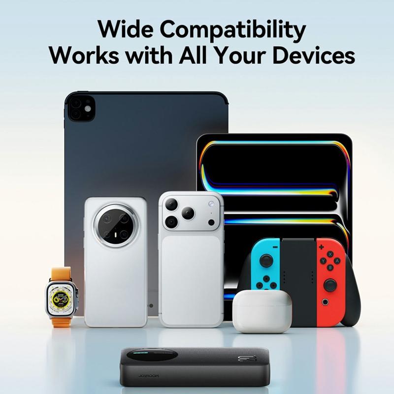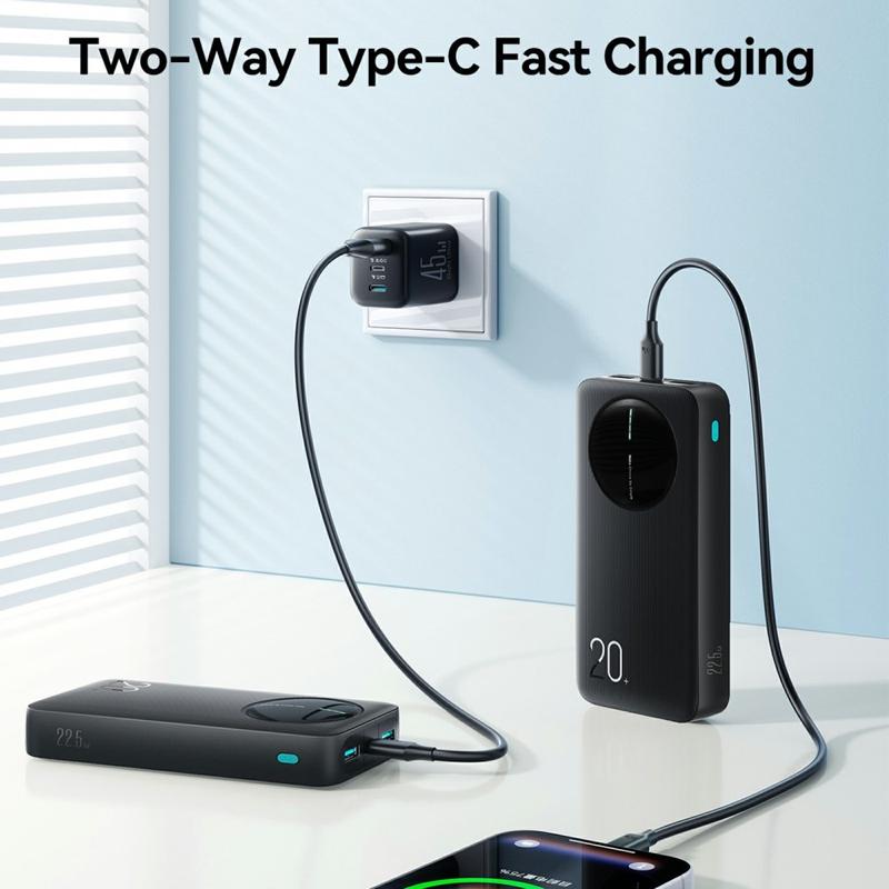 La banque d'alimentation JOYROOM JR-PBF14 Pro est conçue pour les journées chargées, les voyages et la recharge de plusieurs appareils. Avec une capacité élevée de 20000mAh, il vous offre une alimentation de secours fiable pour les smartphones, les tablettes, les écouteurs et bien plus encore. La charge rapide jusqu'à 22.5W permet de réduire les temps d'attente, tandis que les trois ports de sortie vous permettent de charger jusqu'à trois appareils simultanément. Un indicateur clair à 4 LED indique la puissance restante en un coup d'œil, pour que vous sachiez toujours quand il est temps de recharger.