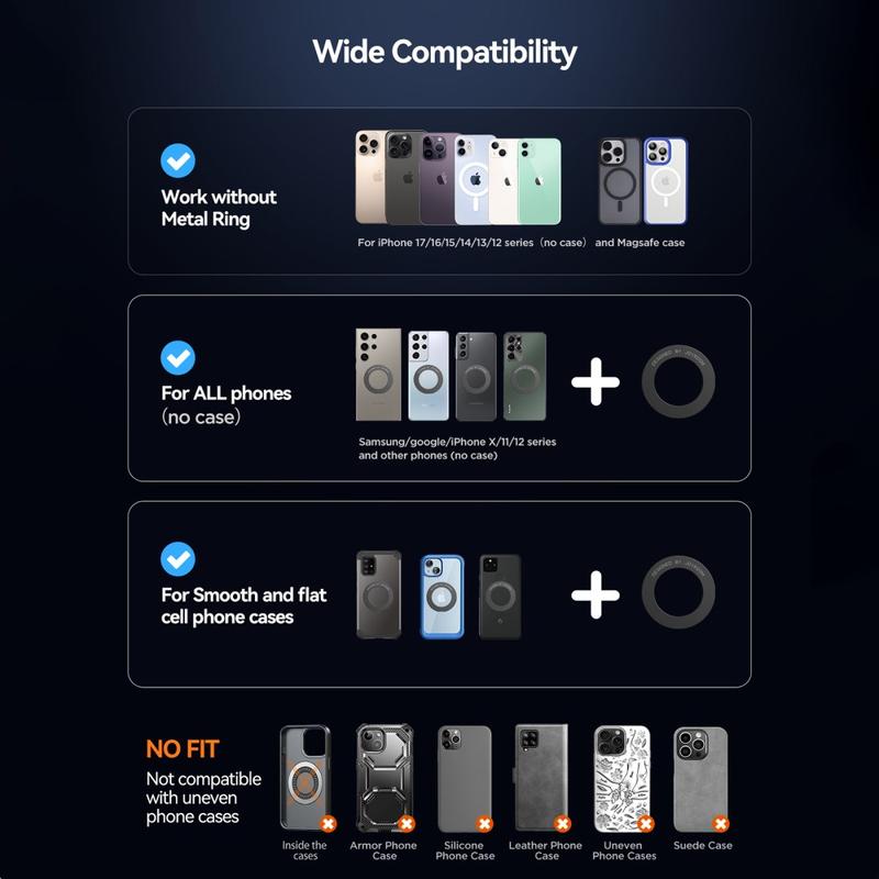 - Fixation magnétique double face compatible avec les accessoires Magsafe