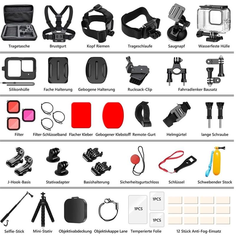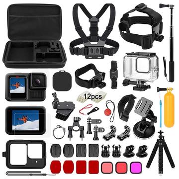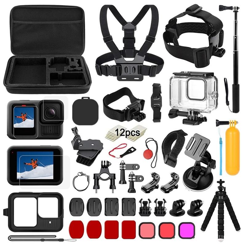 Kit d'accessoires 39-en-1 pour GoPro Hero13 Black - Boîtier étanche, sangle de poitrine et de tête, selfie stick, supports + 9H Screen Protectors
