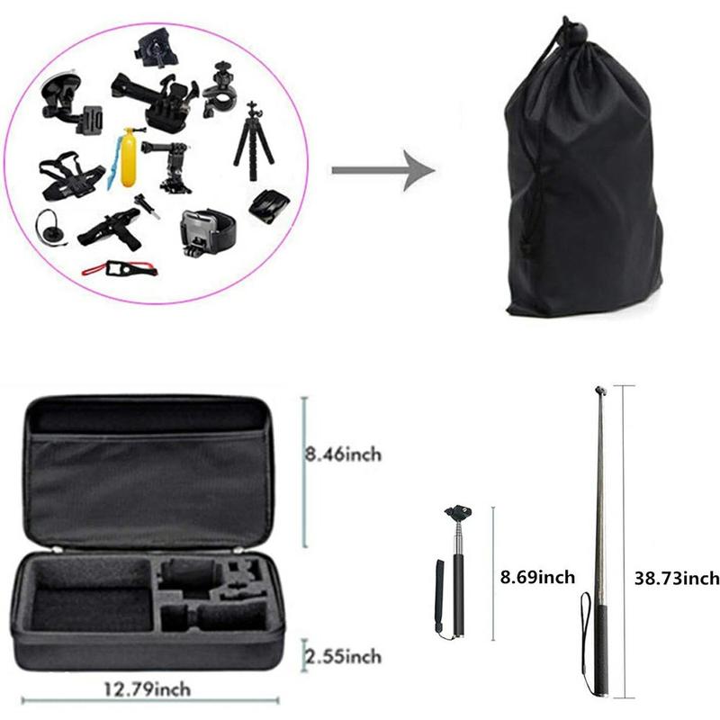 Kit d'accessoires pour caméra d'action 71 en 1 - Sangle pour poitrine/tête, perche à selfie, trépied, poignée flottante et ensemble de fixations pour GoPro, DJI, Insta360, AKASO