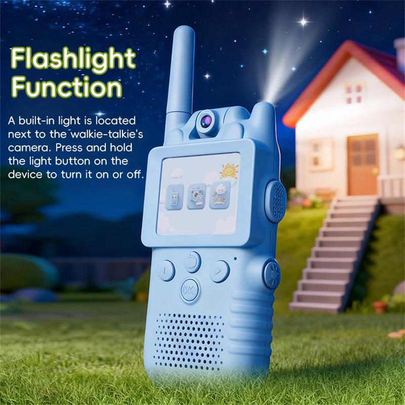 La caméra rotative à 180° permet aux enfants de changer d'angle plus facilement et de capturer différentes vues pendant le jeu. Ne nécessitant ni Wi-Fi, ni données mobiles, ni carte SIM, les appareils prennent en charge la communication directe en temps réel pour une utilisation simple et pratique à l'intérieur comme à l'extérieur. La lampe de poche intégrée ajoute une touche de plaisir et de praticité supplémentaire pour les jeux en soirée ou les petites aventures, tandis que la fonction de stockage de photos permet aux enfants d'enregistrer et de revoir leurs moments préférés.
