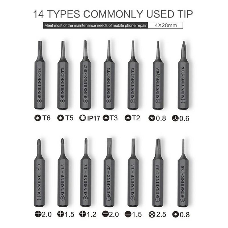 • Kit de tournevis électrique de précision SUNSHINE SD-18E - Outil de réparation rechargeable en aluminium avec 14 embouts en acier et 3 lampes LED