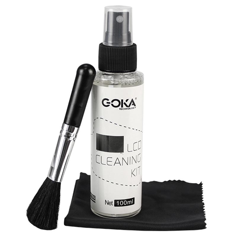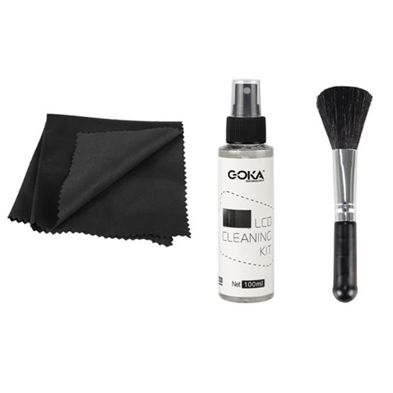 • Kit de Nettoyage d'Écran 3-en-1 Goka - Spray 100ml, Chiffon de nettoyage & Brosse
