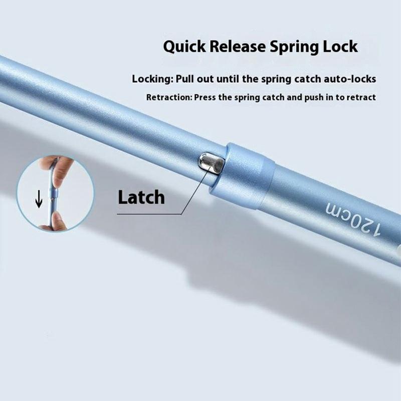 - Spécifications - Matériau : Alliage d'aluminium | Poids : 180g | Longueur extensible : 120cm | Longueur pliée : 37cm.