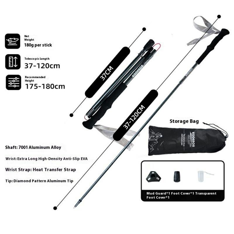 Le bâton de trekking KODENOR combine légèreté et durabilité, ce qui le rend parfait pour les aventuriers qui ont besoin d'un soutien fiable sans encombrement. Sa structure pliable et compacte vous permet de le ranger facilement dans votre sac à dos, tandis que la longueur réglable garantit la flexibilité sur différents terrains.