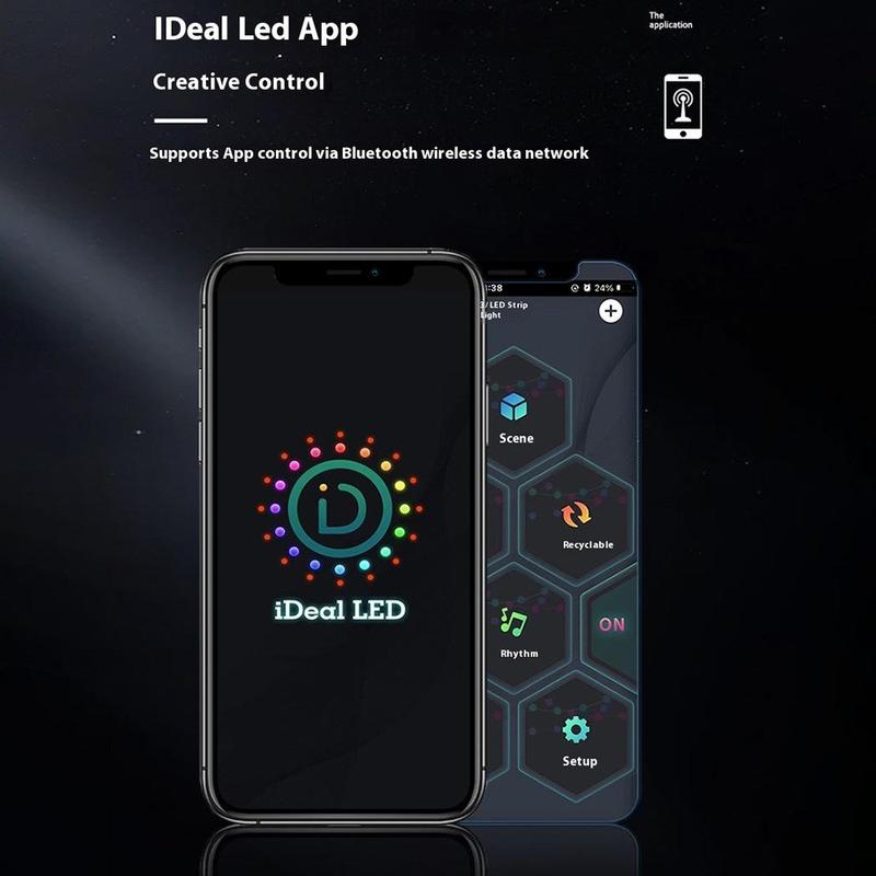 - Contrôle par application intelligente - Connectez-vous via Bluetooth et utilisez l'application iDeal LED pour personnaliser les couleurs, la luminosité, les effets et les motifs directement depuis votre smartphone.