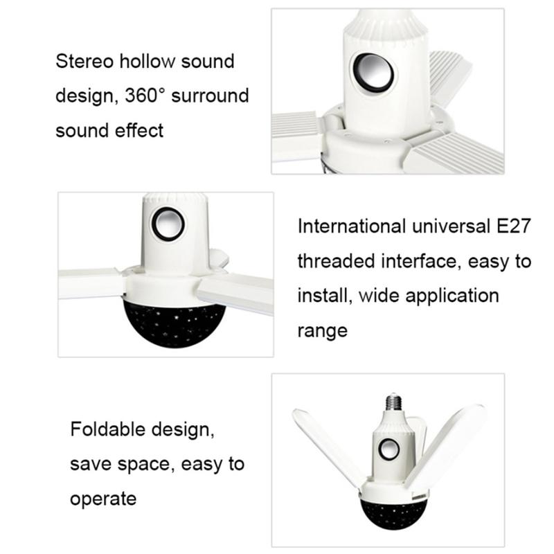 Plafonnier LED pliable à trois feuilles avec haut-parleur Bluetooth et modes d'ambiance RVB