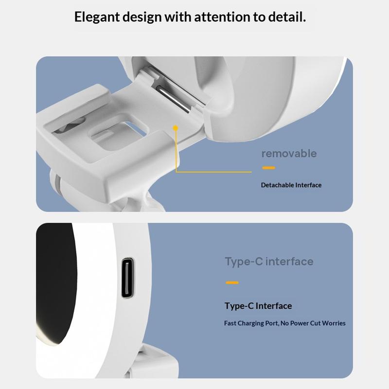 - Chargement par USB-C (5V⎓1A) avec jusqu'à 5 heures d'éclairage continu.