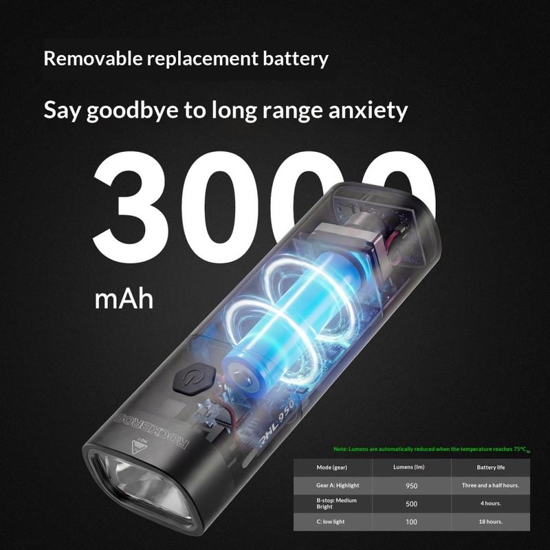 • Lampe de vélo rechargeable Rockbros RHL950 - Phare avant à LED de 950 lumens avec fixation à dégagement rapide
