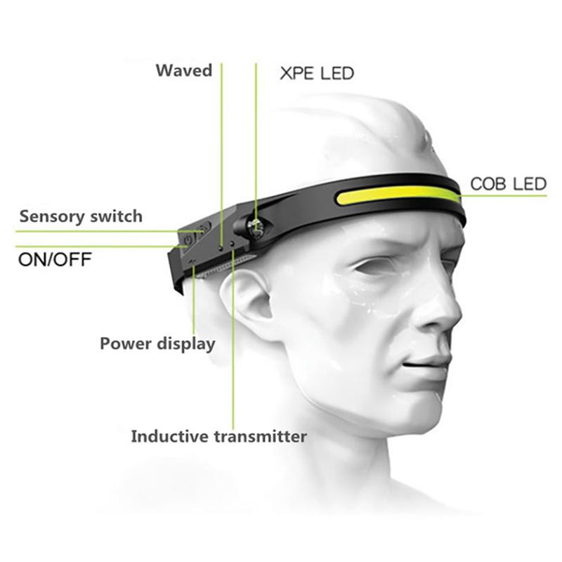 Lampe frontale LED rechargeable LX200 - Lampe frontale COB super lumineuse avec 4 modes d'éclairage, étanche