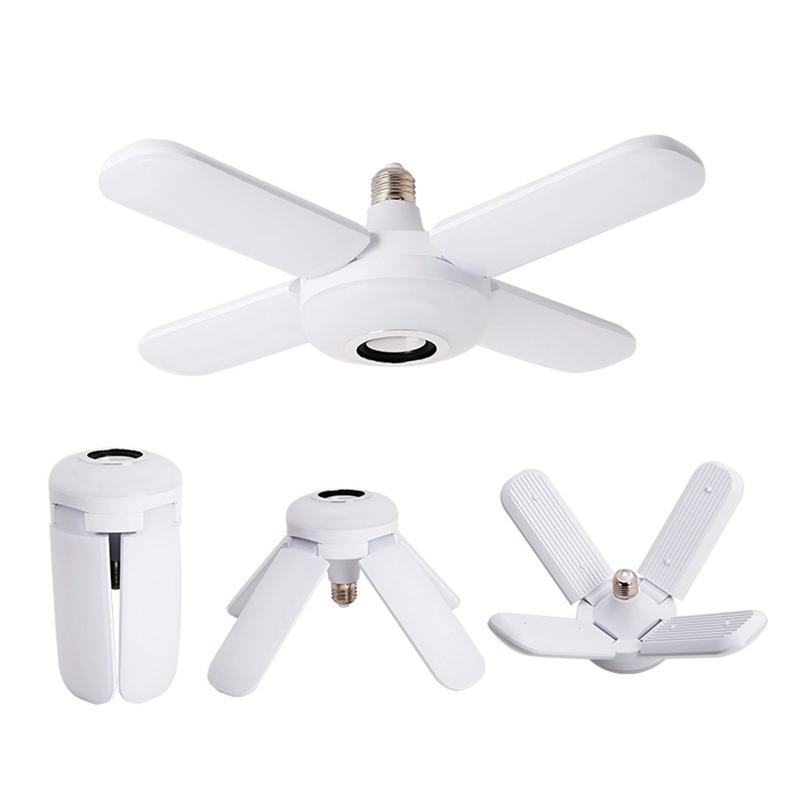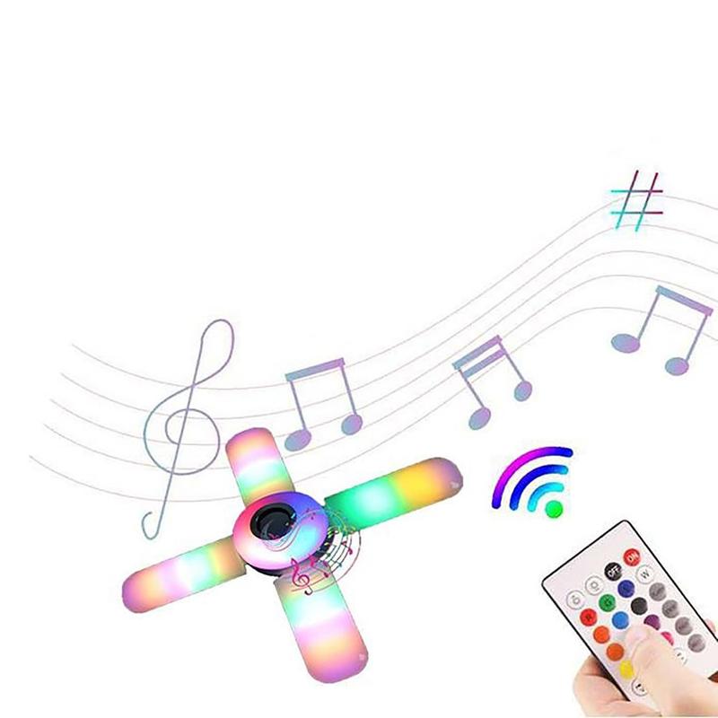 Plafonnier musical Bluetooth E27 - Lumière changeante de couleur RGB à 4 feuilles pliable avec haut-parleur