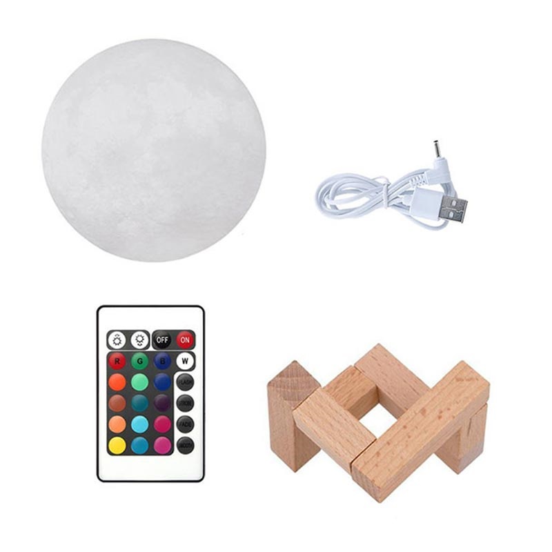 Lampe Lune RGB LED / Veilleuse YK2302 - 15cm, 1000mAh, 16 couleurs, Luminosité réglable