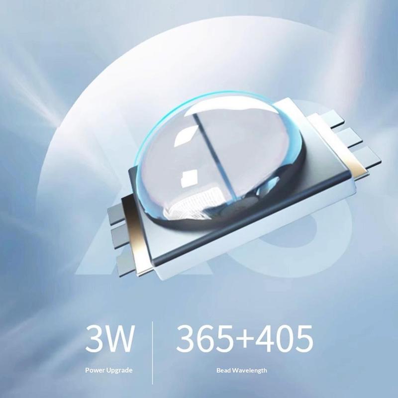 - Technologie LED à double longueur d'onde : 365 + 405 nm