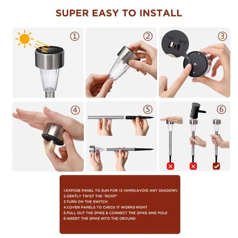 L'extérieur Décoratif Étanche Anti-Déformation Acier Inoxydable Lumières Solaires les plus brillantes - 12 pièces