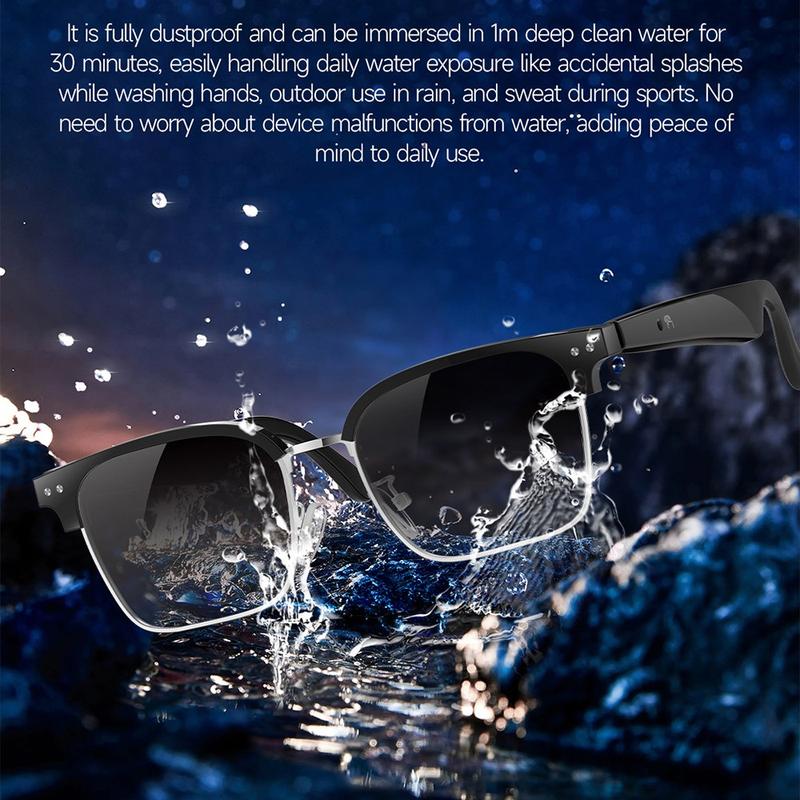 Lunettes audio intelligentes Bluetooth W100D AI - Traduction en temps réel, assistant vocal, lecture de musique, étanchéité IP67