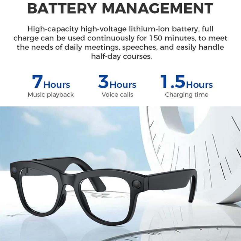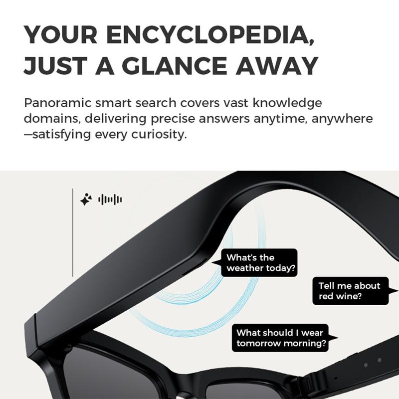 Les fonctions alimentées par l'IA, notamment la reconnaissance d'objets, les commandes vocales, l'interaction avec le dialogue et la traduction en temps réel, améliorent la commodité et permettent une communication transparente entre les langues. Les deux haut-parleurs avec amplificateurs indépendants offrent un son riche et clair pour la lecture de musique et les appels, tandis que les microphones à réduction de bruit garantissent une qualité vocale irréprochable.