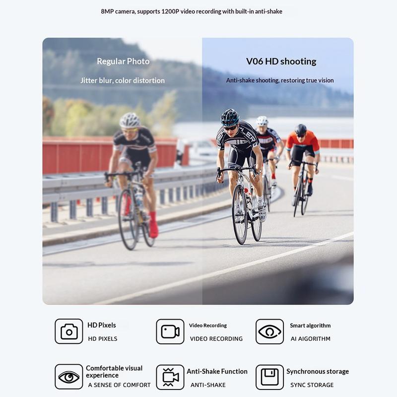 Les lunettes intelligentes V06 AI utilisent une technologie avancée d'amélioration de l'image pour optimiser vos enregistrements dans des conditions réelles. Des fonctionnalités telles que l'éclaircissement en basse lumière, le flou d'arrière-plan et la réduction du bruit multi-images permettent d'obtenir des images plus claires et plus équilibrées, idéales pour les activités de plein air et les moments du quotidien.