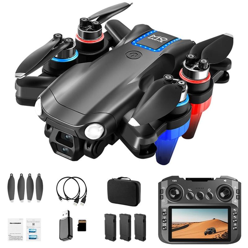 • M9 Drone FPV à moteur sans balais - Quadcopter pliable avec deux caméras HD, flux optique, évitement des obstacles, contrôleur à l'écran et 3 batteries