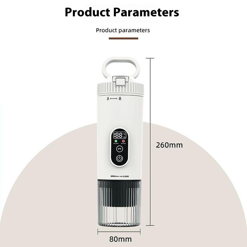 Savourez un café de qualité barista n'importe où grâce à la machine à expresso portable, une cafetière compacte et sans fil conçue pour les voyages, les aventures en plein air et l'usage quotidien. Dotée d'un double mode de fonctionnement, elle permet une extraction à température ambiante pour un café riche en arômes et une extraction chauffée pour un expresso rapide et chaud à la demande. Avec une batterie rechargeable de 7500mAh, cette cafetière permet 4 à 5 utilisations en mode chauffé ou plus de 200 utilisations en mode température ambiante sur une seule charge. Construite en ABS durable et en acier inoxydable 304, elle résiste à une utilisation fréquente tout en délivrant jusqu'à 21 bars de pression pour une extraction de qualité professionnelle. Compacte, légère et rechargeable par USB, elle est le compagnon de café idéal pour la maison, le bureau, les voyages ou les activités de plein air.