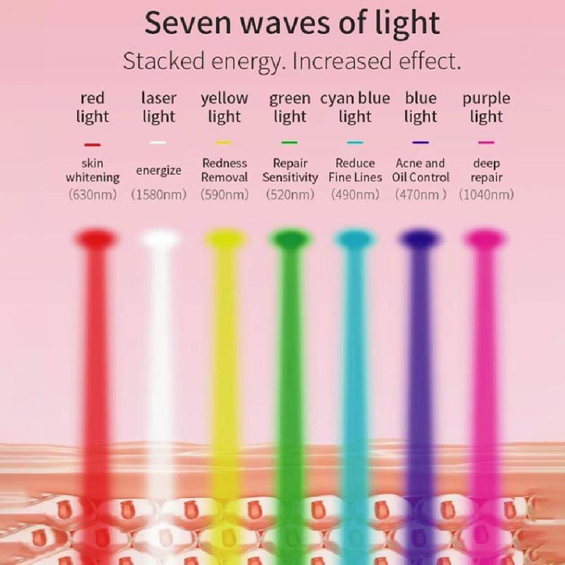 - Thérapie LED à 7 couleurs - Comprend une lumière rouge (630 nm), bleue (460 nm), verte (515 nm), violette, jaune-orange, cyan et blanche pour cibler de multiples problèmes de peau.