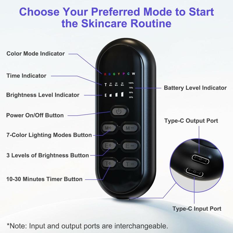 Ce masque de luminothérapie LED utilise 7 couleurs de lumière ciblées (rouge, bleu, vert, jaune, violet, cyan et blanc) pour traiter plusieurs problèmes cutanés tels que le teint terne, le teint irrégulier, les imperfections et les signes de vieillissement. Chaque longueur d'onde est conçue pour favoriser une peau d'apparence plus saine grâce à un traitement doux et non invasif.