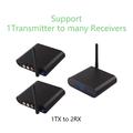 - Sortie une-deux - Un émetteur prend en charge deux récepteurs pour une lecture multi-écrans simultanée.