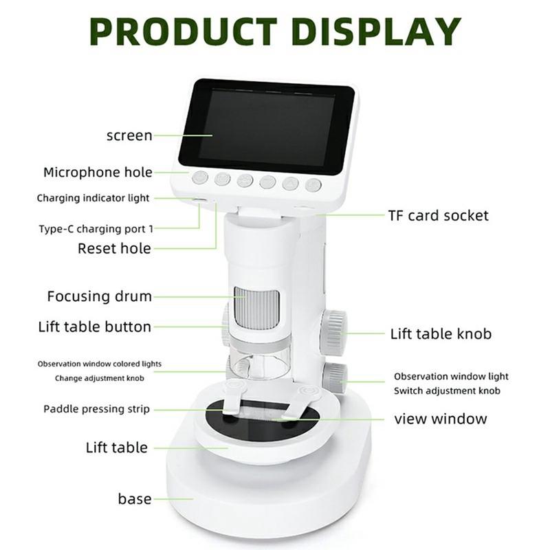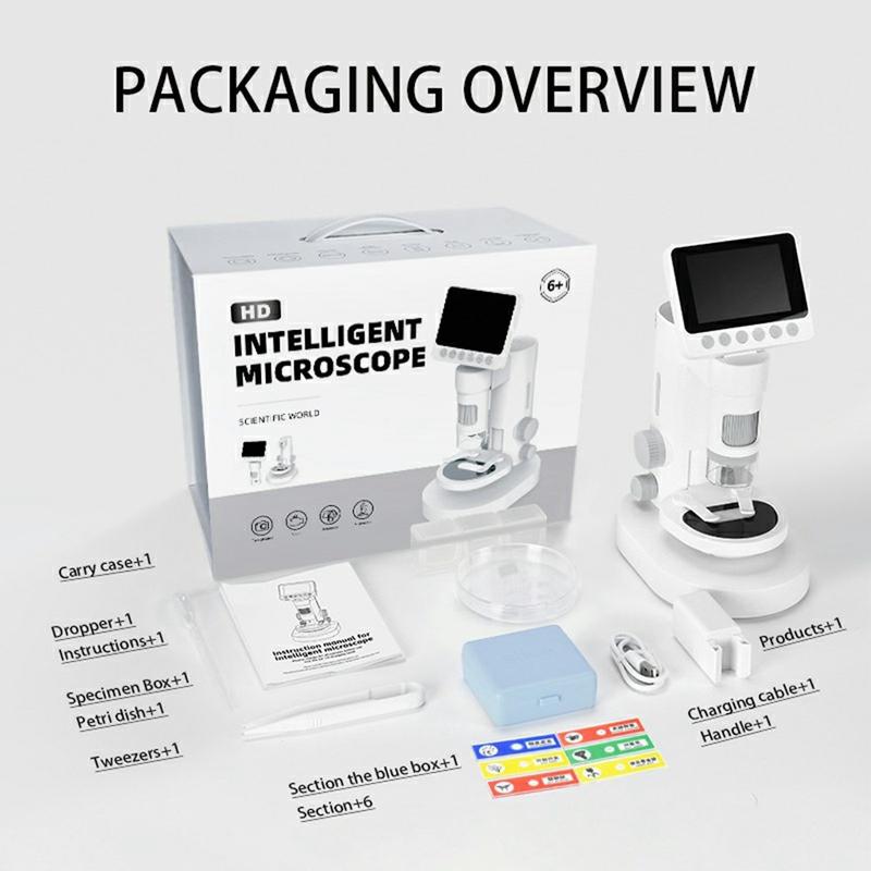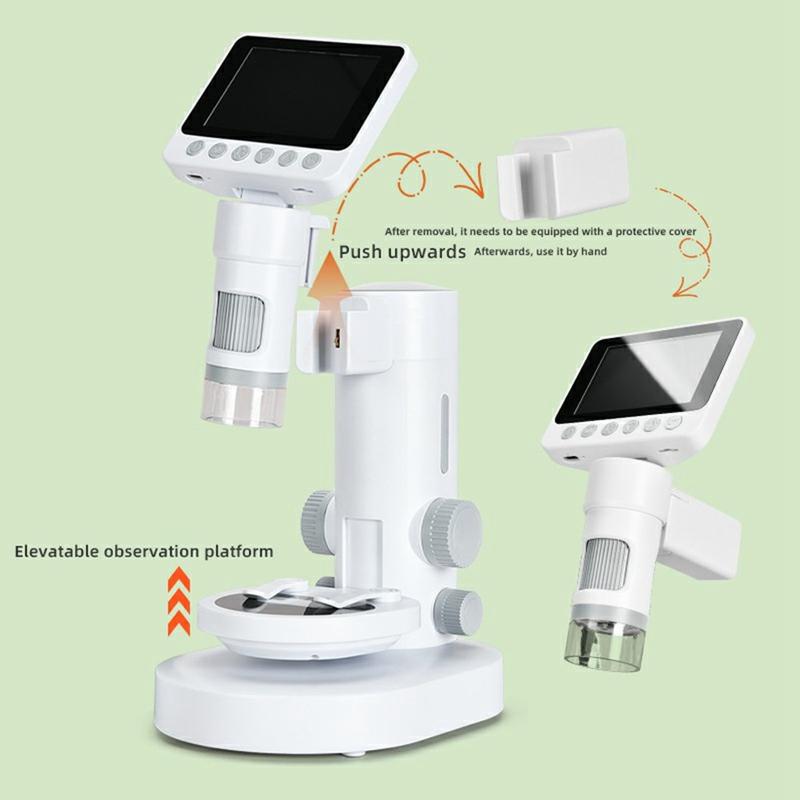 • Microscope numérique pour enfants 1000X / 2-en-1 Microscope de poche et de bureau avec écran HD de 3,5 pouces et jeu de lamelles