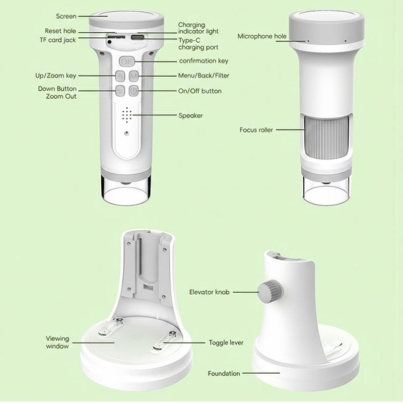 Le microscope numérique F9 est un appareil compact et éducatif conçu pour initier les enfants et les débutants au monde microscopique de manière ludique et accessible. Avec une double utilisation à la main et sur le bureau, un écran IPS rond et clair et un enregistrement photo et vidéo haute résolution, il permet aux jeunes explorateurs d'observer, de capturer et d'apprendre partout où la curiosité les frappe - à la maison, à l'école ou à l'extérieur.