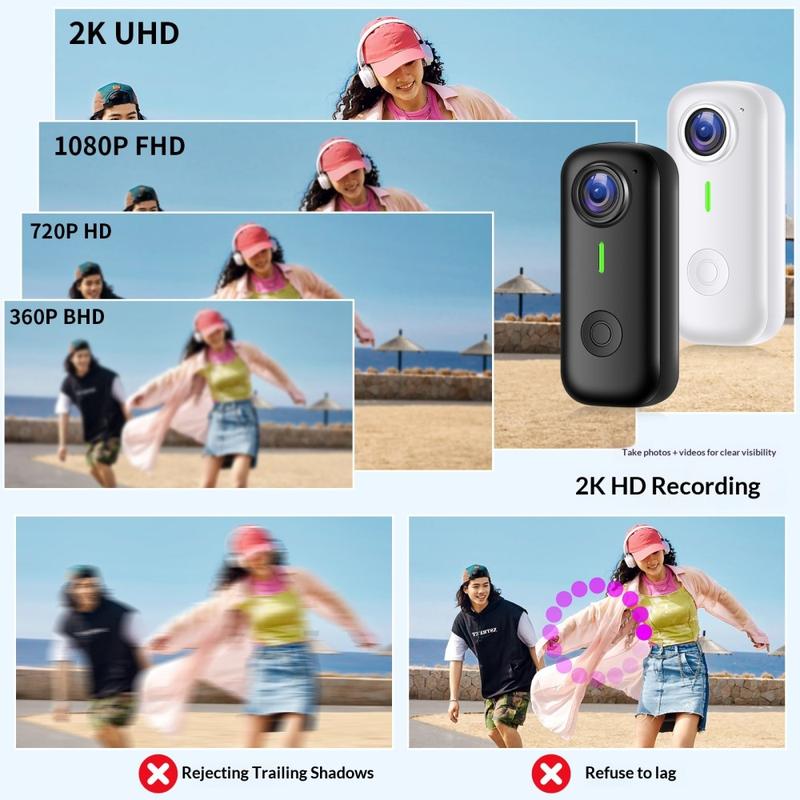 Immortalisez vos moments du quotidien en mode mains libres grâce à la mini caméra D100, un enregistreur compact et portable conçu pour les activités de plein air, la vidéo d'animaux de compagnie, le vélo, les trajets quotidiens et les vidéos informelles à la première personne. Son boîtier ultra-compact permet de la glisser facilement dans une poche, de la porter autour du cou, de la fixer à vos vêtements ou de l'installer sur le collier d'un animal, un vélo ou un casque sans ajouter de poids notable. Avec l'enregistrement vidéo 2K, le contrôle via l'application Wi-Fi et un objectif grand angle de 120°, elle vous offre un moyen pratique d'enregistrer la vie d'un point de vue naturel.
