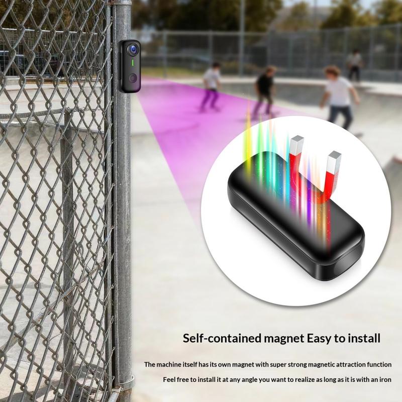 • Mini caméra D100 2K / Enregistreur de poche portable magnétique avec contrôle via application Wi-Fi, grand angle 120°, kit de fixation pour animal de compagnie/casque, batterie 600 mAh