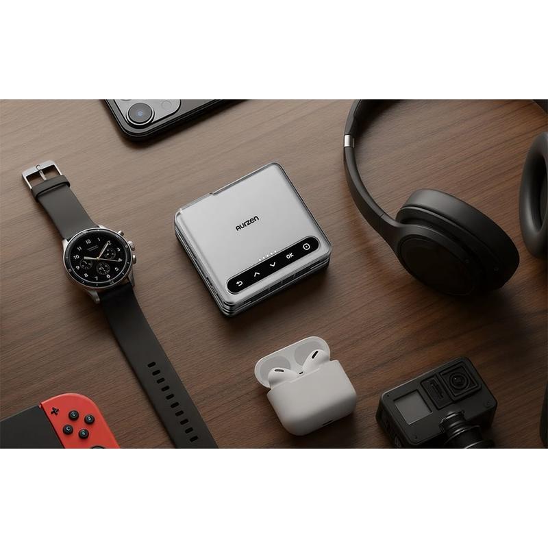 Emportez vos divertissements grand écran partout avec vous grâce au mini projecteur portable pliable en trois Aurzen ZIP. Fin, pliable et étonnamment puissant, il est conçu pour une expérience visuelle moderne, que ce soit pour regarder des films à la maison, organiser des projections en extérieur ou faire des présentations rapides lors de vos déplacements. La batterie intégrée de 5000 mAh offre jusqu'à 1,5 heure d'autonomie en mode Eco. Grâce à la prise en charge des batteries externes et à la recharge rapide PD (adaptateur 24 W ou supérieur requis), vous pouvez prolonger l'utilisation et continuer à regarder même pendant la recharge.