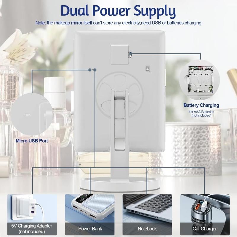 - Options de grossissement multiples - Comprend des panneaux de grossissement 1X, 2X et 3X ainsi qu'un miroir rond 10X détachable, vous permettant de vous concentrer sur les détails fins tels que l'eyeliner, les cils et la précision des soins de la peau.