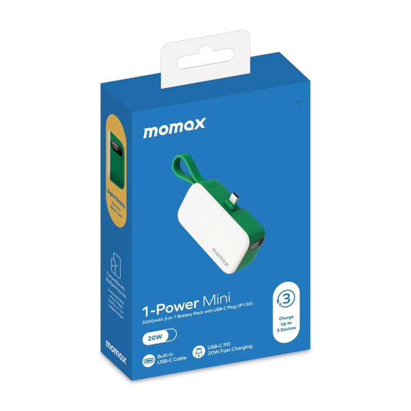 Momax 1-Power Mini Pop Art 5000mAh Power Bank / Chargeur portable avec prise USB-C, câble USB-C, port USB-C - 20W