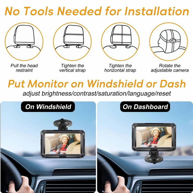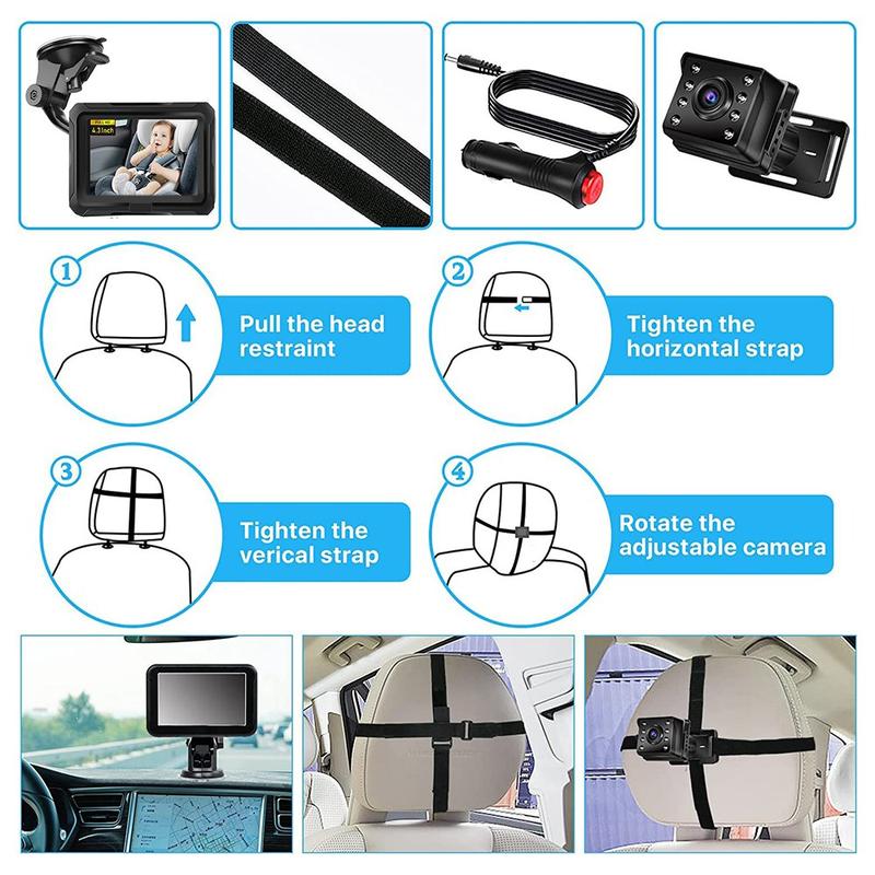 Conduisez l'esprit tranquille tout en gardant un œil sur votre enfant grâce au moniteur de voiture HD 1080P de 4,3 pouces. Cet accessoire de sécurité intelligent est doté d'une caméra haute définition très nette avec une rotation de 360° et un angle de vision large de 150°, vous permettant de surveiller clairement votre enfant sans tourner la tête. Avec une vision nocturne améliorée, une clarté diurne éclatante et une installation simple, il est conçu pour améliorer à la fois la sécurité et la commodité lors de chaque trajet.