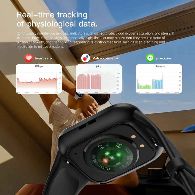 - Surveillance de la santé : fréquence cardiaque, pression artérielle, oxygène dans le sang, température corporelle, stress et sommeil