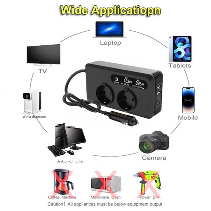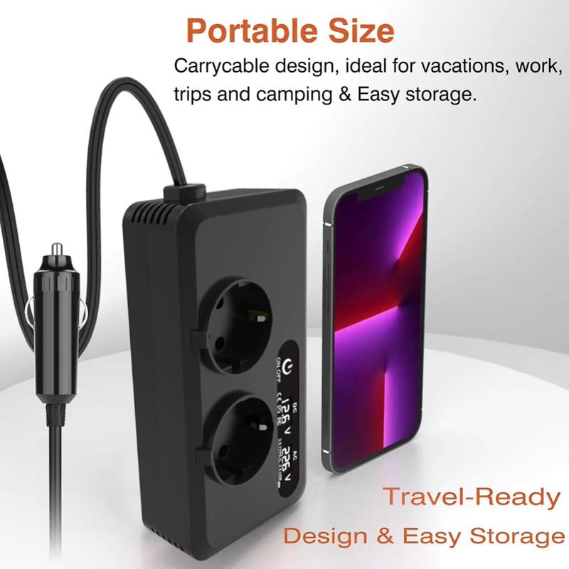 - Conversion d'énergie efficace - Convertit 12V DC en 220V AC avec une sortie continue de 200W et une puissance de crête de 400W, idéale pour la plupart des appareils électroniques de voyage et de tous les jours.