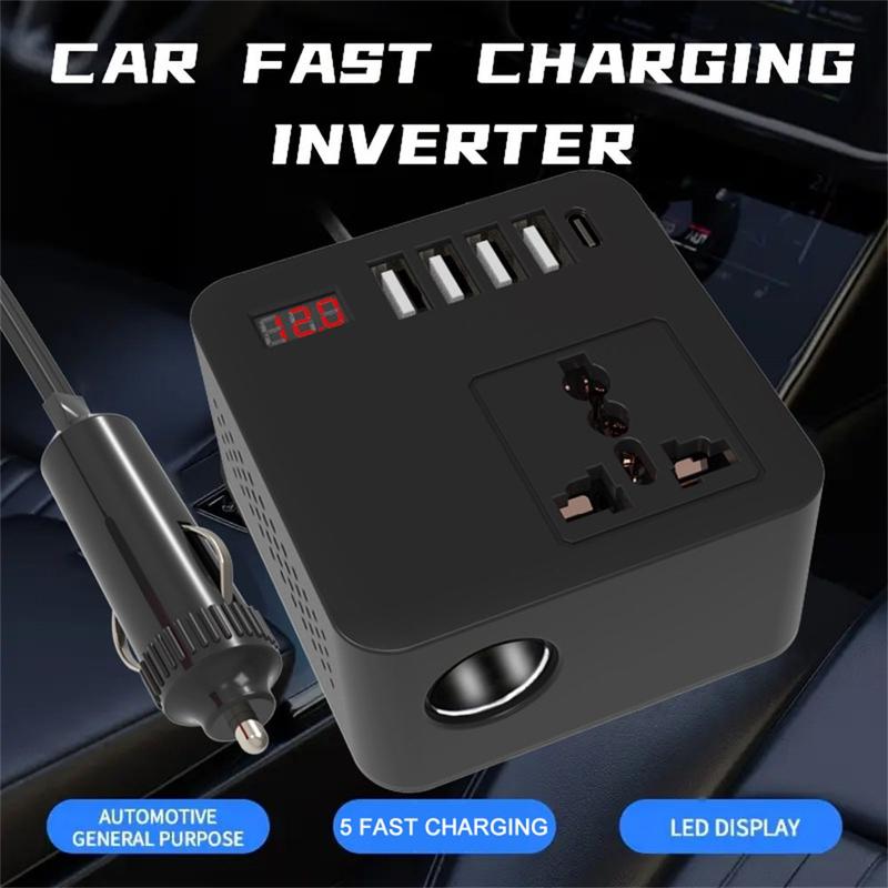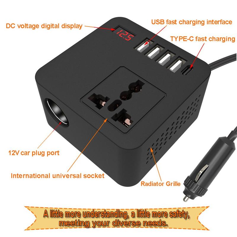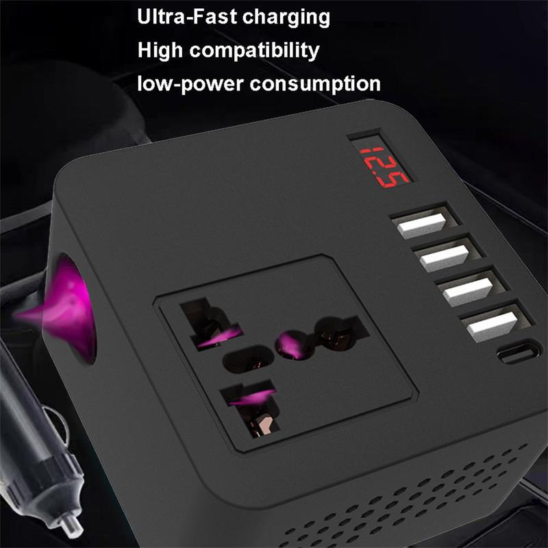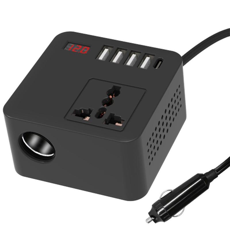 Onduleur de voiture à affichage numérique - Convertisseur 12V/24V DC en 110V/220V AC avec USB-C, USB-A et prise AC 150W