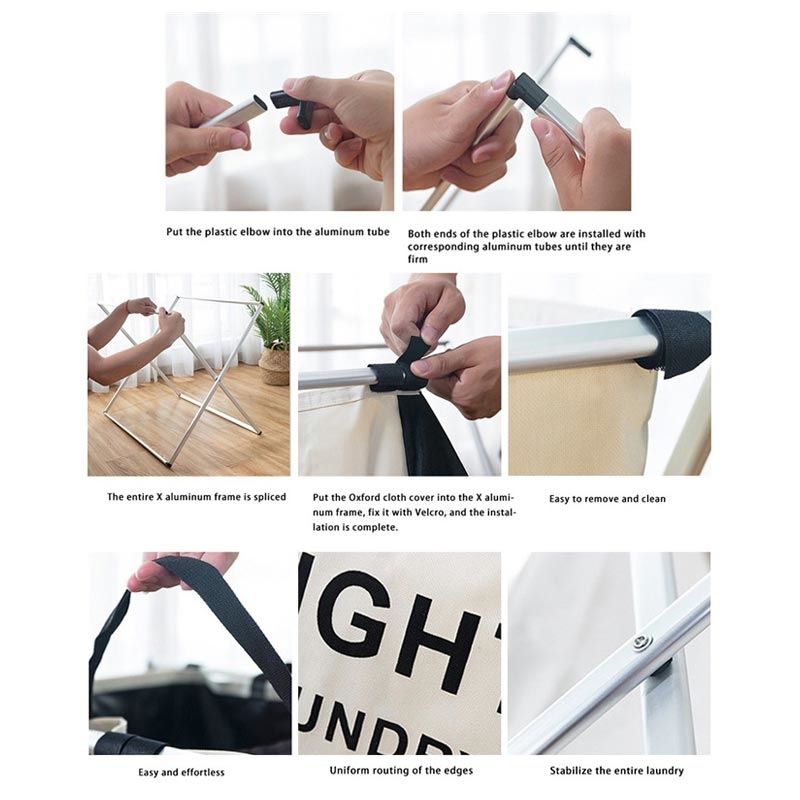 - Inclus : Panier à linge + ensemble de tubes en aluminium