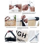 - Assemblage : Insérer les coudes dans les tubes → connecter le cadre en X → attacher la couverture en tissu Oxford à l'aide de sangles