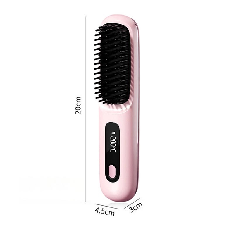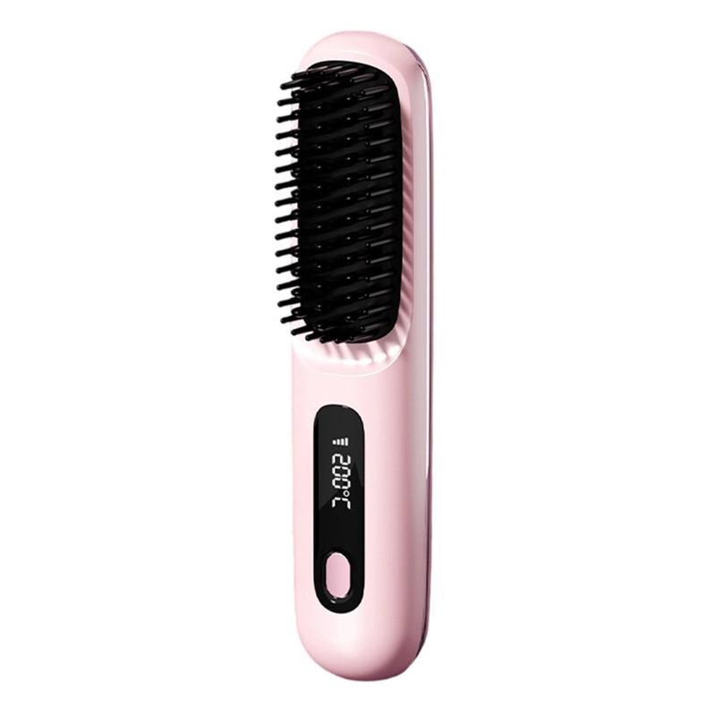 Peigne lisseur sans fil avec écran LCD et 3 réglages de température - Rose