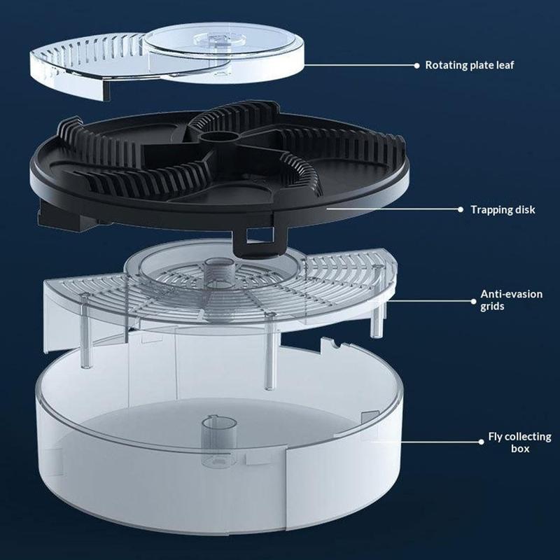 Le mécanisme rotatif automatique fonctionne avec un faible niveau sonore, ce qui le rend adapté à une utilisation de jour comme de nuit sans causer de nuisance. Sa large surface de piégeage de 16 cm et sa zone de couverture pouvant atteindre 120 m² le rendent efficace pour les grands espaces intérieurs, tandis que sa conception anti-évasion permet de retenir les insectes capturés. La structure amovible facilite également l'entretien, permettant un nettoyage régulier pour une utilisation à long terme plus hygiénique.