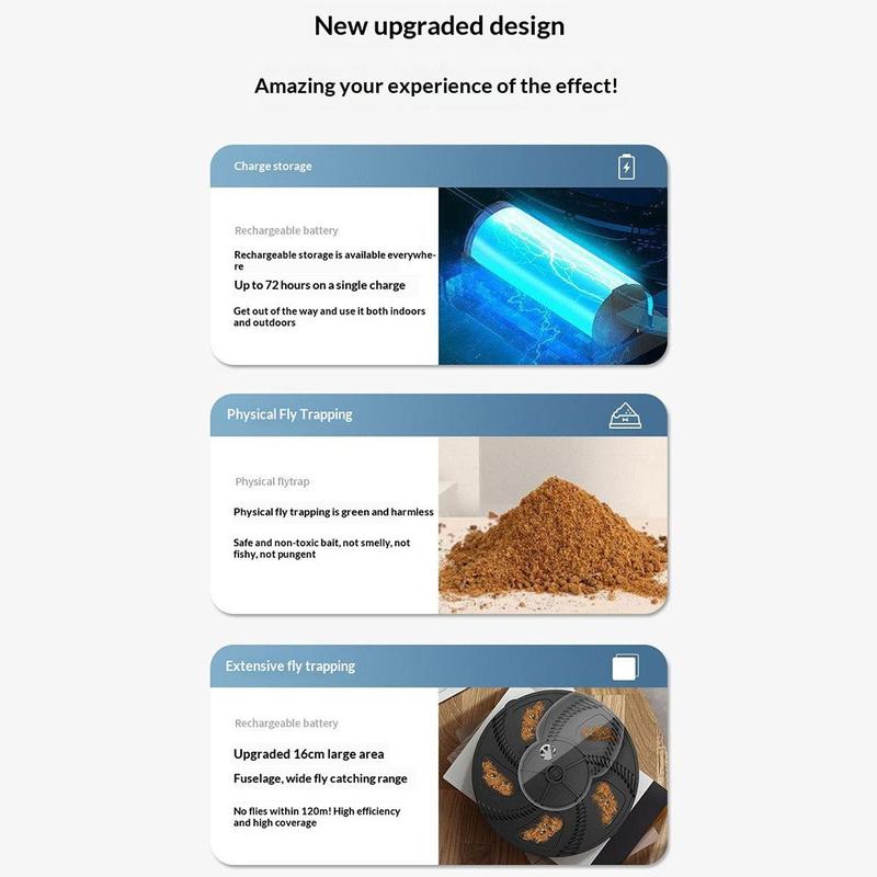 • Piège à mouches rotatif automatique rechargeable par USB pour usage intérieur