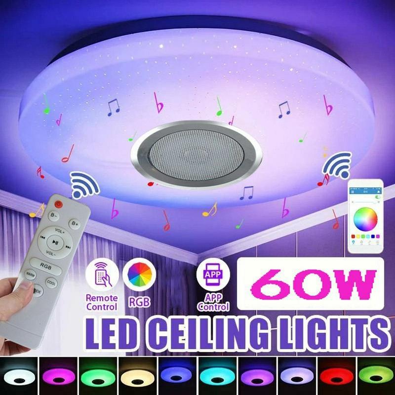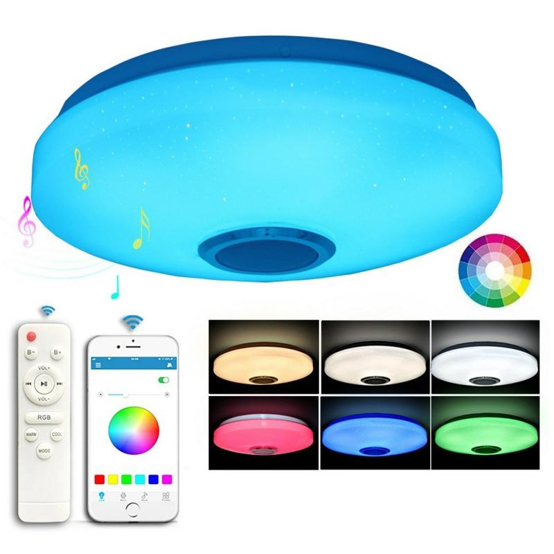 Plafonnier LED intelligent rond avec haut-parleur Bluetooth et télécommande - 60W - 38cm