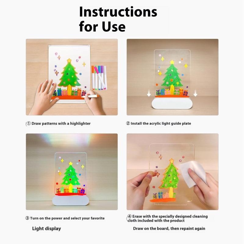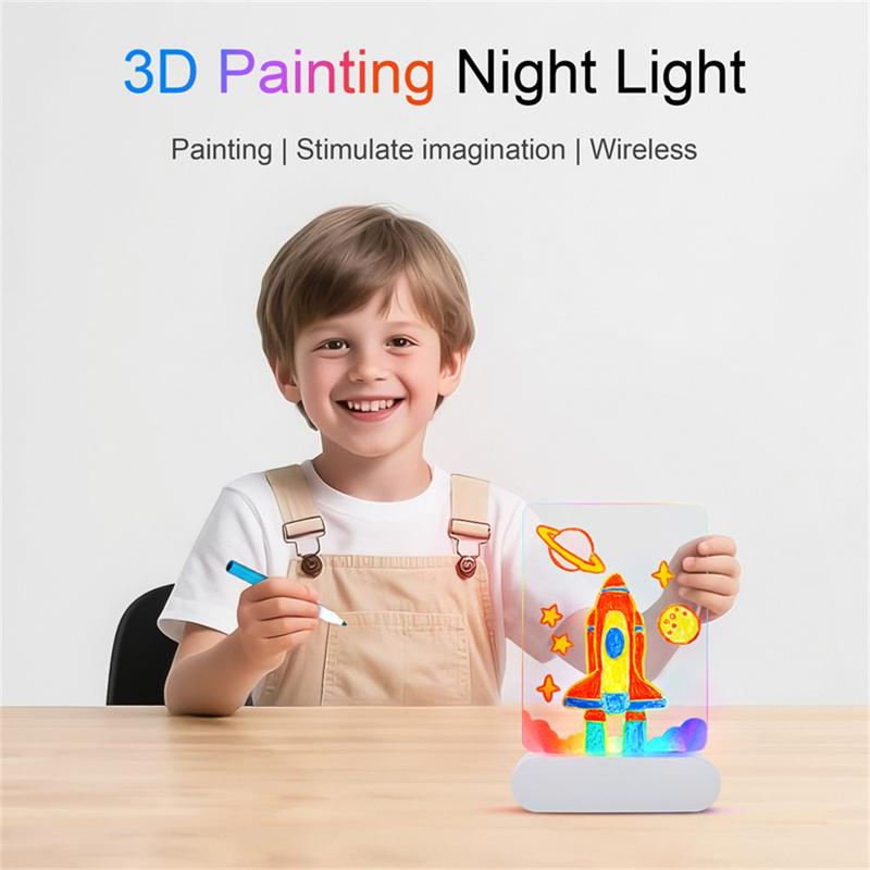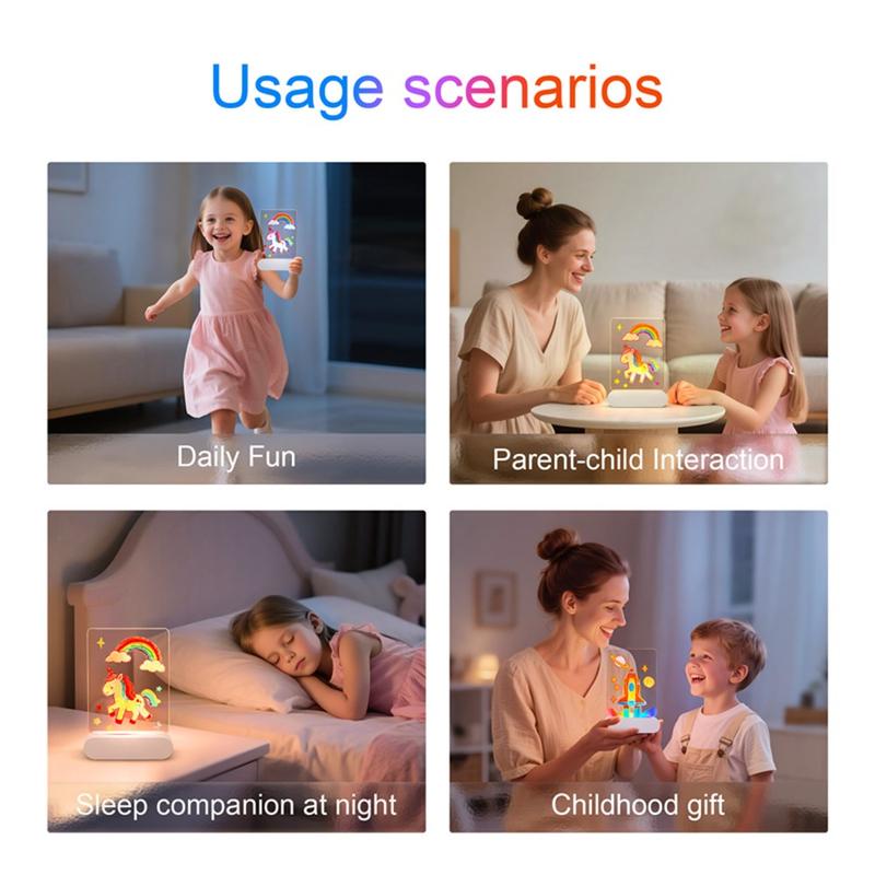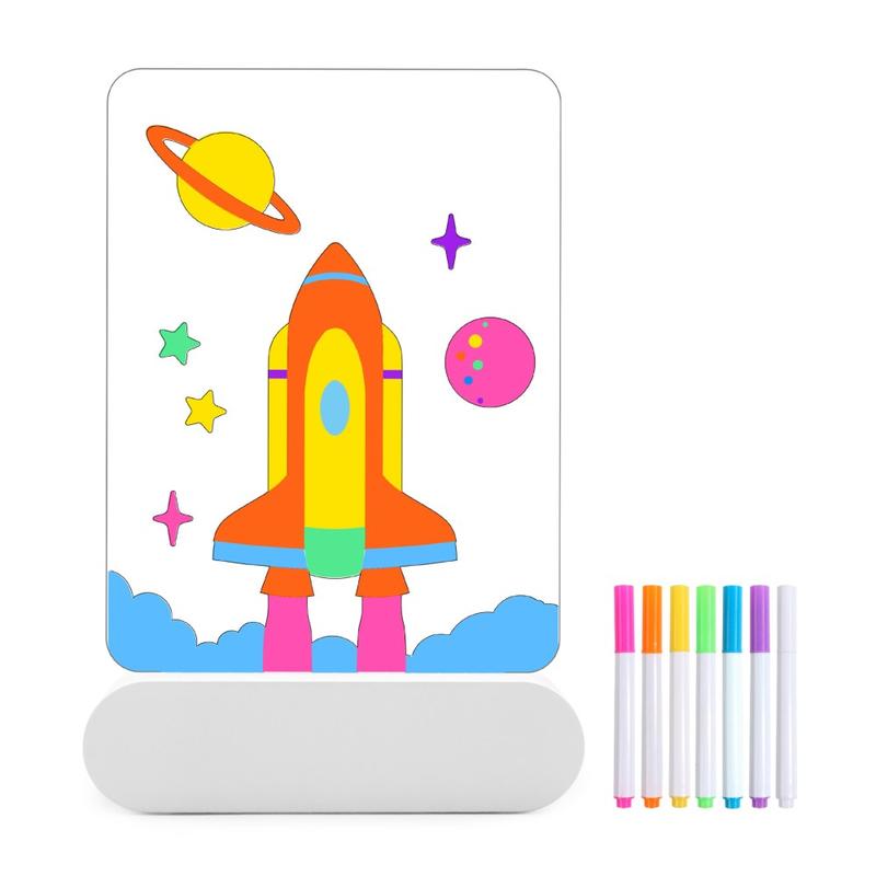 • Planche à dessin LED rechargeable et effaçable avec 7 crayons de couleur - 3D Acrylic Drawing & Memo Night Light