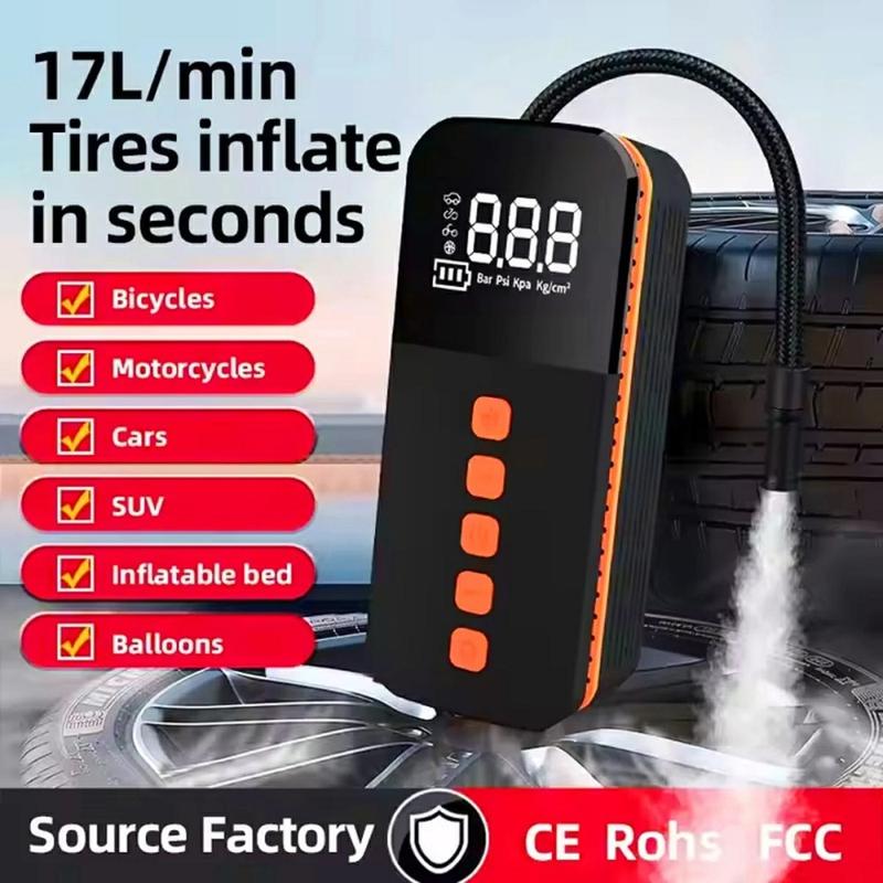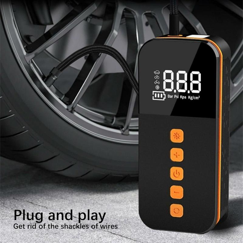 Gonfleur de pneus de voiture portable - Pompe à air électrique sans fil à affichage numérique avec lumière LED
