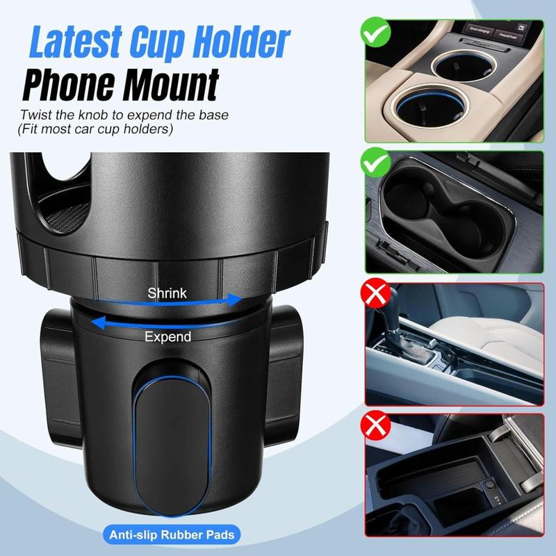 Support de téléphone 2-en-1 pour voiture, à fixer sur le porte-gobelet - Support rotatif à 360° et réglable avec système de fixation rapide, compatible avec les téléphones de 4 à 7 pouces