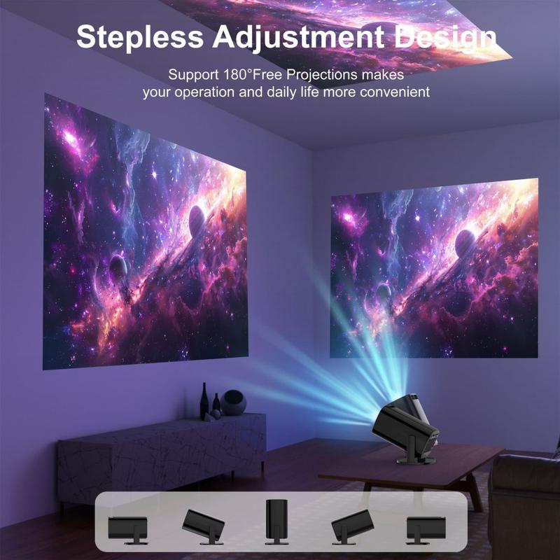 Projecteur portable Android 14 V1 (200 ANSI) - Résolution native 720p, correction automatique de la distorsion trapézoïdale, inclinaison à 180°, WiFi 6 double bande et Bluetooth 5.2, 1 Go/8 Go