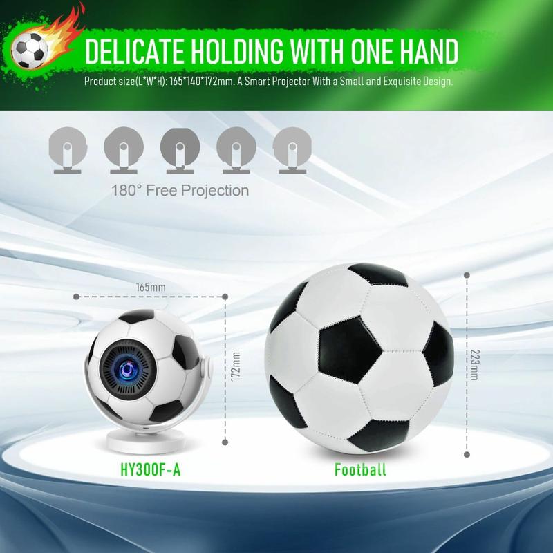 Projecteur portable HY300F en forme de ballon de football - WiFi 6, Android 14, 170 lumens ANSI, projecteur home cinéma 720p - Prise européenne